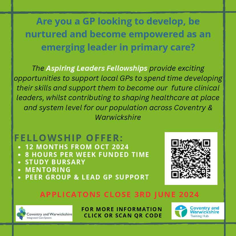 Coventry & Warwickshire Training Hub have hosted the (NHS Midlands) Primary Care Trailblazer Fellowships since 2020. Eligible practices are now invited to apply for one of three fellowship places on offer for 2024/25. Please click here for details of the fellowship and how to apply.