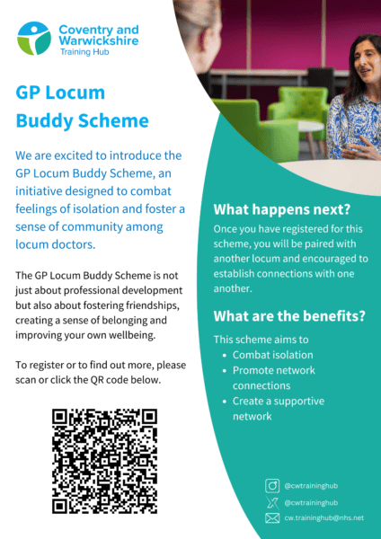 In recognition of the challenges faced by GP locums in Coventry and Warwickshire, we are excited to introduce the GP Locum Buddy Scheme, an initiative designed to combat feelings of isolation and foster a sense of community among locum doctors.