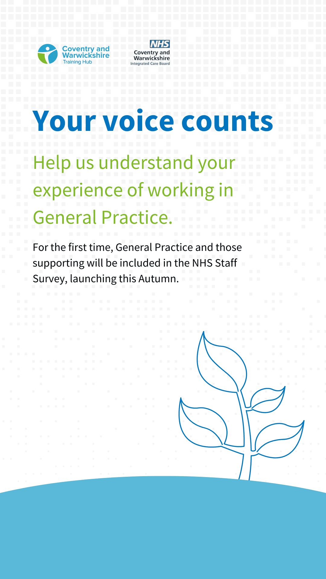 For the first time in Coventry and Warwickshire, our general practice teams, PCNs, Coventry & Rugby GP Alliance, SWGP Federation, WN Federation and Coventry & Warwickshire Training Hub have the opportunity to be included in the NHS Staff Survey. This survey is one of the world’s largest and most well-respected workforce surveys, gathering the highest standards of robust, quality data to inform our understanding of staff experience.