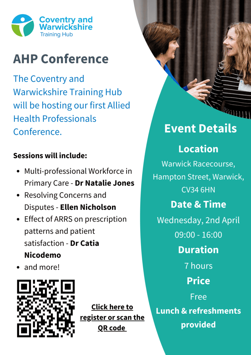 The Coventry and Warwickshire Training Hub will be hosting our first Allied Health Professionals Conference. Register here.