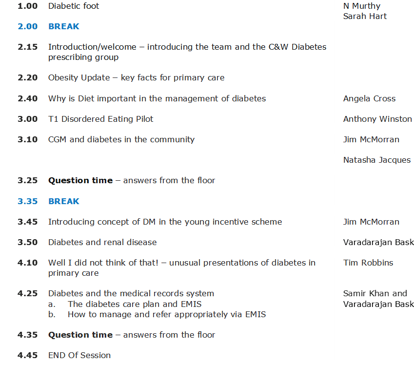 Booking on Warwickshire North and South Warwickshire PLT – Diabetes