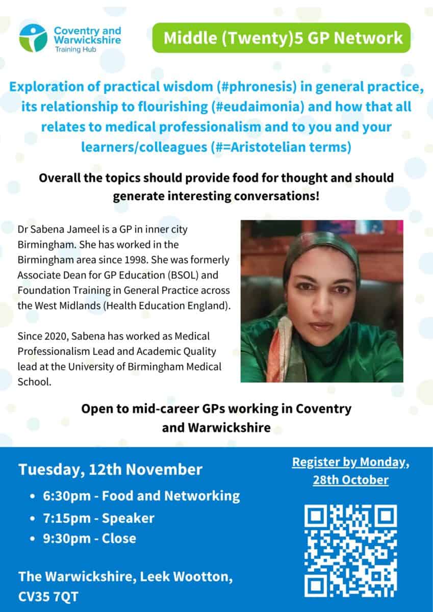 Dr Sabena Jameel is a GP in inner city Birmingham. She has worked in the Birmingham area since 1998. She was formerly Associate Dean for GP Education (BSOL) and Foundation Training in General Practice across the West Midlands (Health Education England)