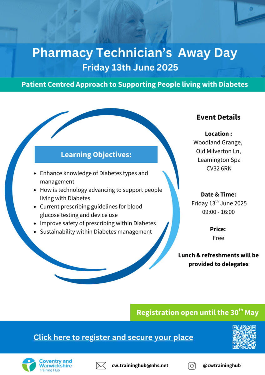 Join us for this day dedicated to Pharmacy Technicians. Learn, share and develop with other PTs. Lunch and refreshments will be provided.