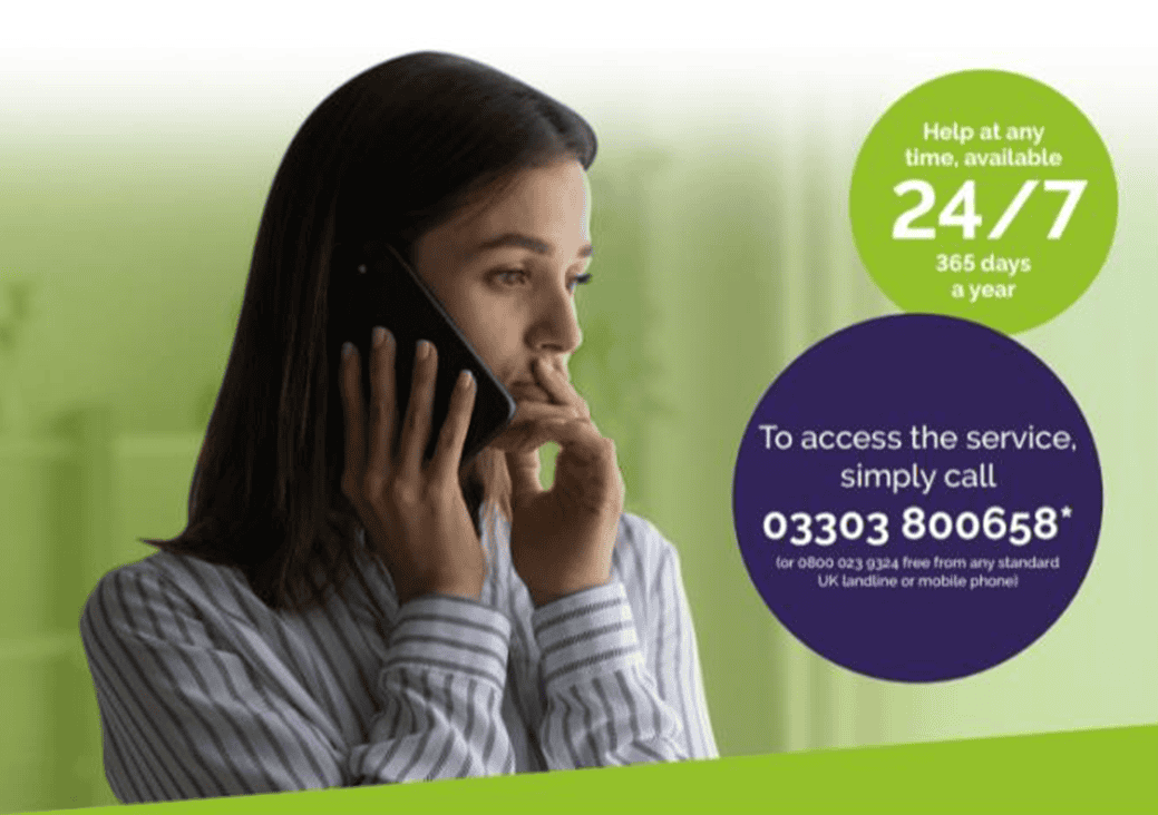 Call the 24/7 confidential counselling service run by Vivup.