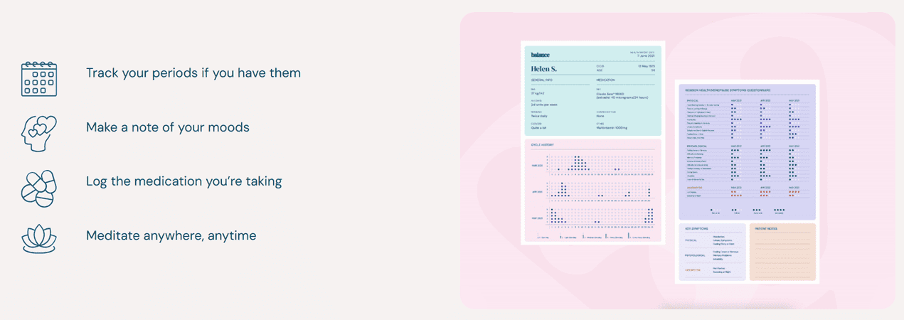 Brought to you by renowned menopause specialist, Dr Louise Newson and the thousands of people who’ve shared their perimenopause and menopause insights, the free balance app allows you to track your symptoms, access personalised expert content, download a Health Report©, share stories in the community and lots more.