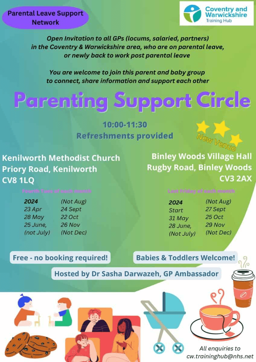 The next parenting support circles are on the 24th September at Kenilworth Methodist Church and the 27th September at our new location, Binley Woods Village Hall.