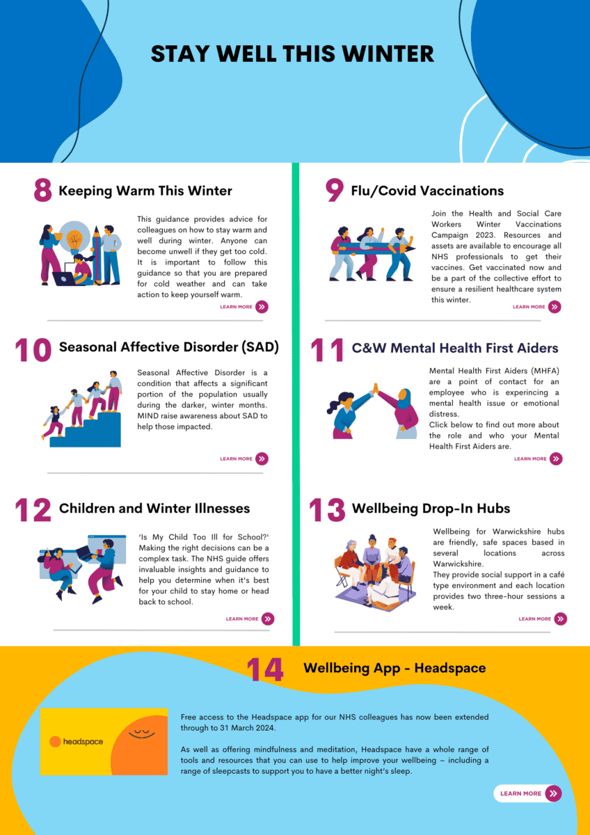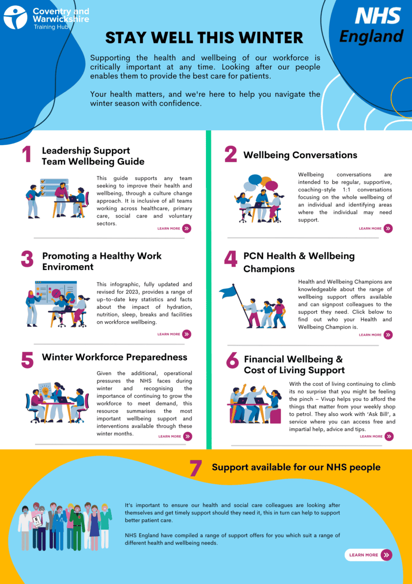 - Download a ‘stay well this winter’ poster full of resources to support you and your teams
