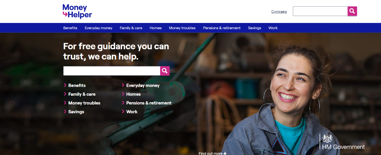 The Money Helper service is managed by the UK Government and has a website with a wealth of information on benefits, savings, pensions and more. They even have tips on how to talk to your creditor should you have a credit card or loan with information about your rights.